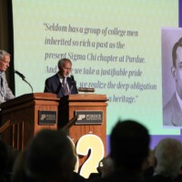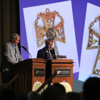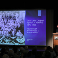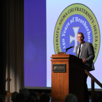 Once dinner was completed, the evening’s program got underway with Jeff McKean ’86, serving as Master of Ceremonies, promising an evening filled with history, nostalgia and remarkable stories of brotherhood. Jeff’s personal story of his family’s involvement with Sigma Chi touched everyone’s heart as he spoke about one day having his grandson live in the “big yellow” house.