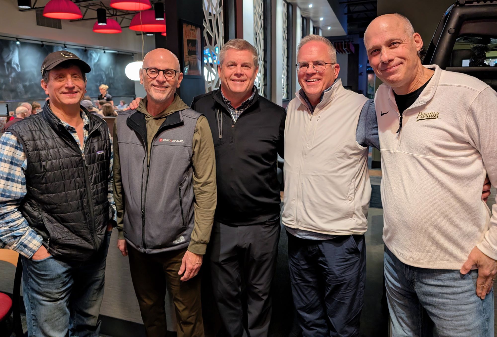 Roughly 30 Delta Delta brothers gathered on December 18 at the Arni’s location in Indianapolis to share a little holiday cheer. Sigs from classes from the late seventies to 2018 took part and enjoyed the chance to catch up with those in attendance. Preston Cobb ’77, who resides in the Chicago area, traveled the furthest to see several of his PBs who were present.