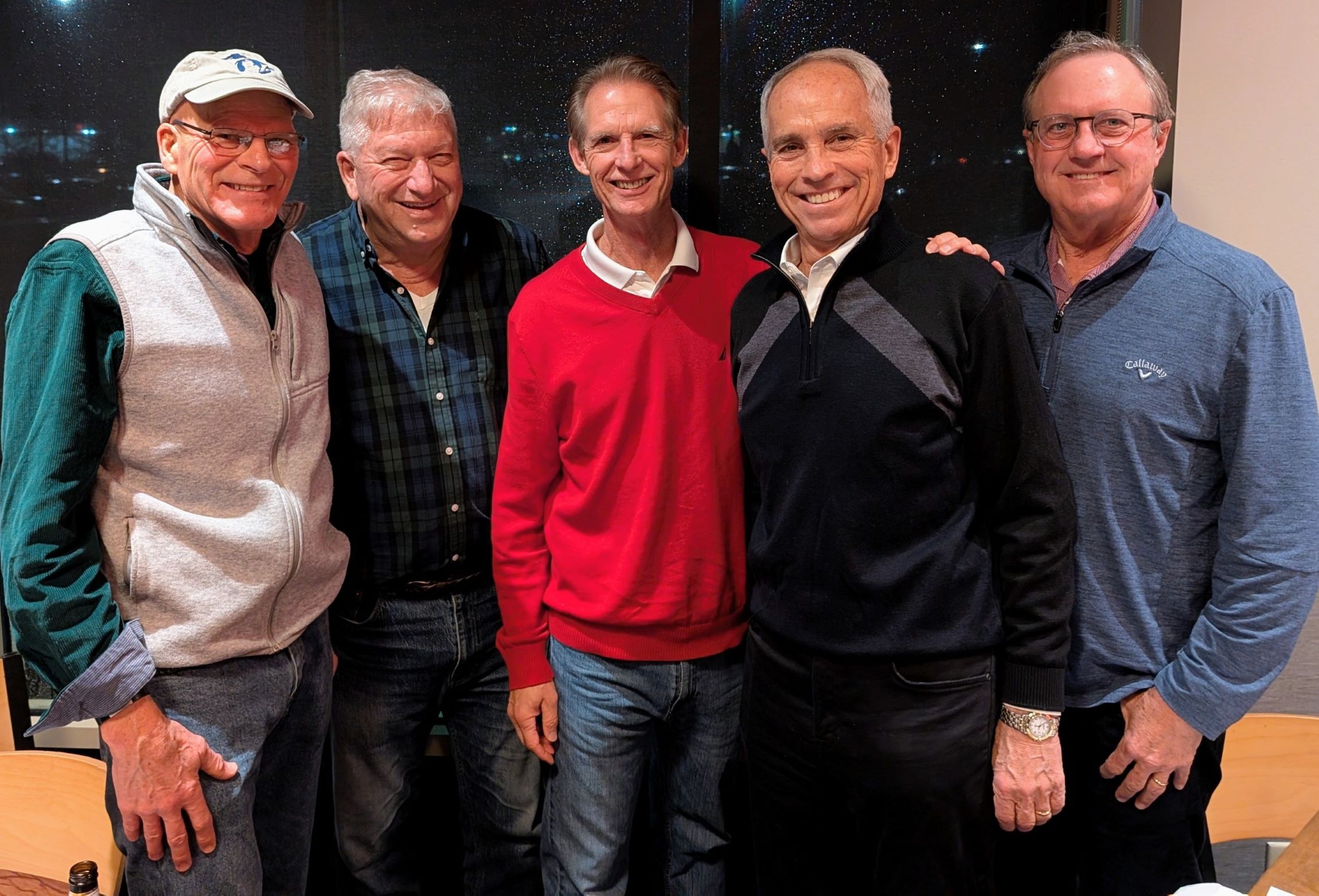 (L-R) Todd Kaminski ‘82, Tom Costakis ’82, Dave Westerbeck ’83, Kent Broach ’82 and Bill Trachtman ‘82